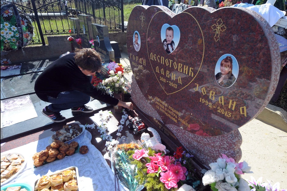 Najviše ljudi okupilo se na grobovima Despotovića, gde je u jednom nizu sahranjena cela porodica. Spomenik malom Davidu je u obliku velikog srca. Počiva između oca Gorana i majke Jovane.