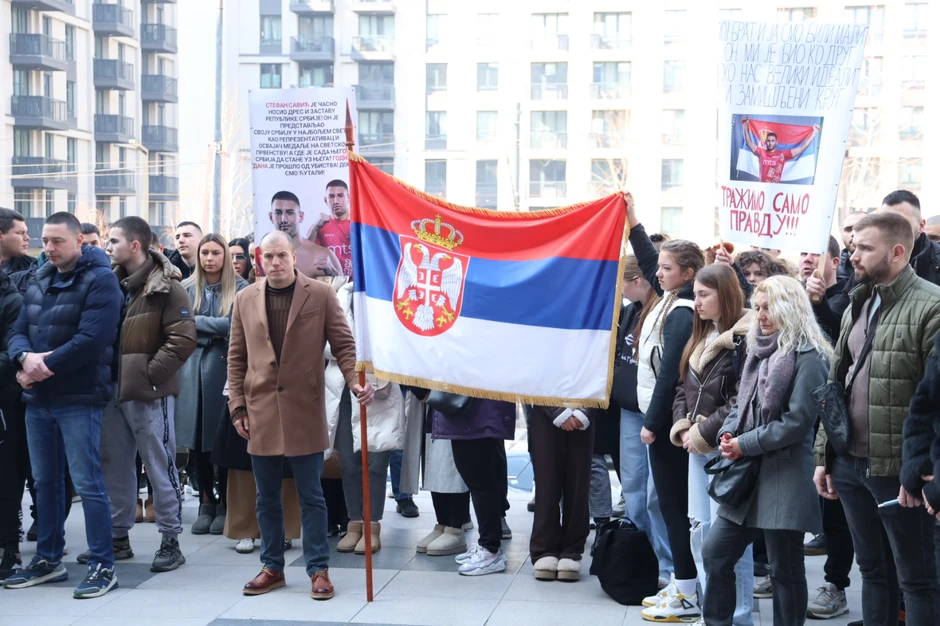 Ispred Višeg suda u Beogradu okupili su se članovi porodice i prijatelji ubijenog MMA borca Stefana Savića (23) koji je pre tačno godinu dana ubijen na Dorćolu.