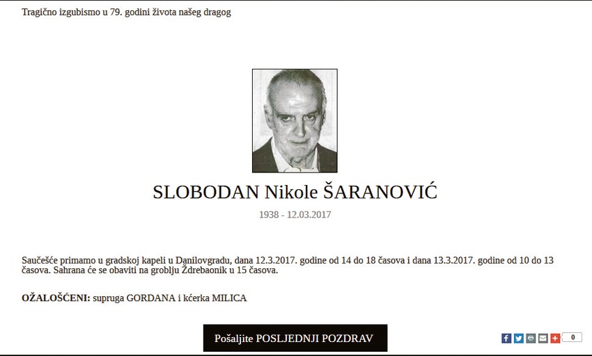 Na današnji dan 2017. godine likvidiran je biznismen Sobodan Šaranović u trenutku kada se nalazio u svojoj redovnoj šetnji, gotovo na kućnom pragu, u budvanskom naselju Dubovica, a dve godine kasnije za organizaciju kriminalne grupe koja ga je likvidirala optužen je Alan Kožar, koji se još uvek nalazi u bekstvu. Pored njega, na optužnici se našao i srpski državljanin Milan Dinić koji je, prema optužnici, dobio zadatak da likvidira nekadašnjeg "kralja kocke" poznatog po dugom sukobu i ratu sa Lukom Bojovićem.