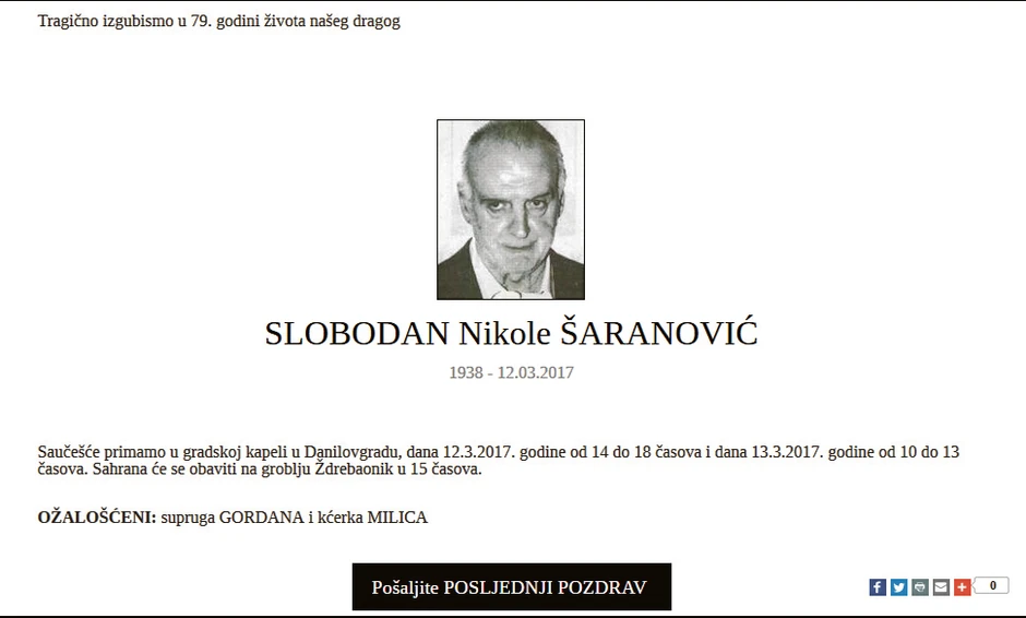 Pre samo nekoliko dana, Evropski sud za ljudska prava u Strazburu utvrdio je da je Crna Gora povredila "pravo na slobodu i bezbednost" Slobodanu Šaranoviću (79).