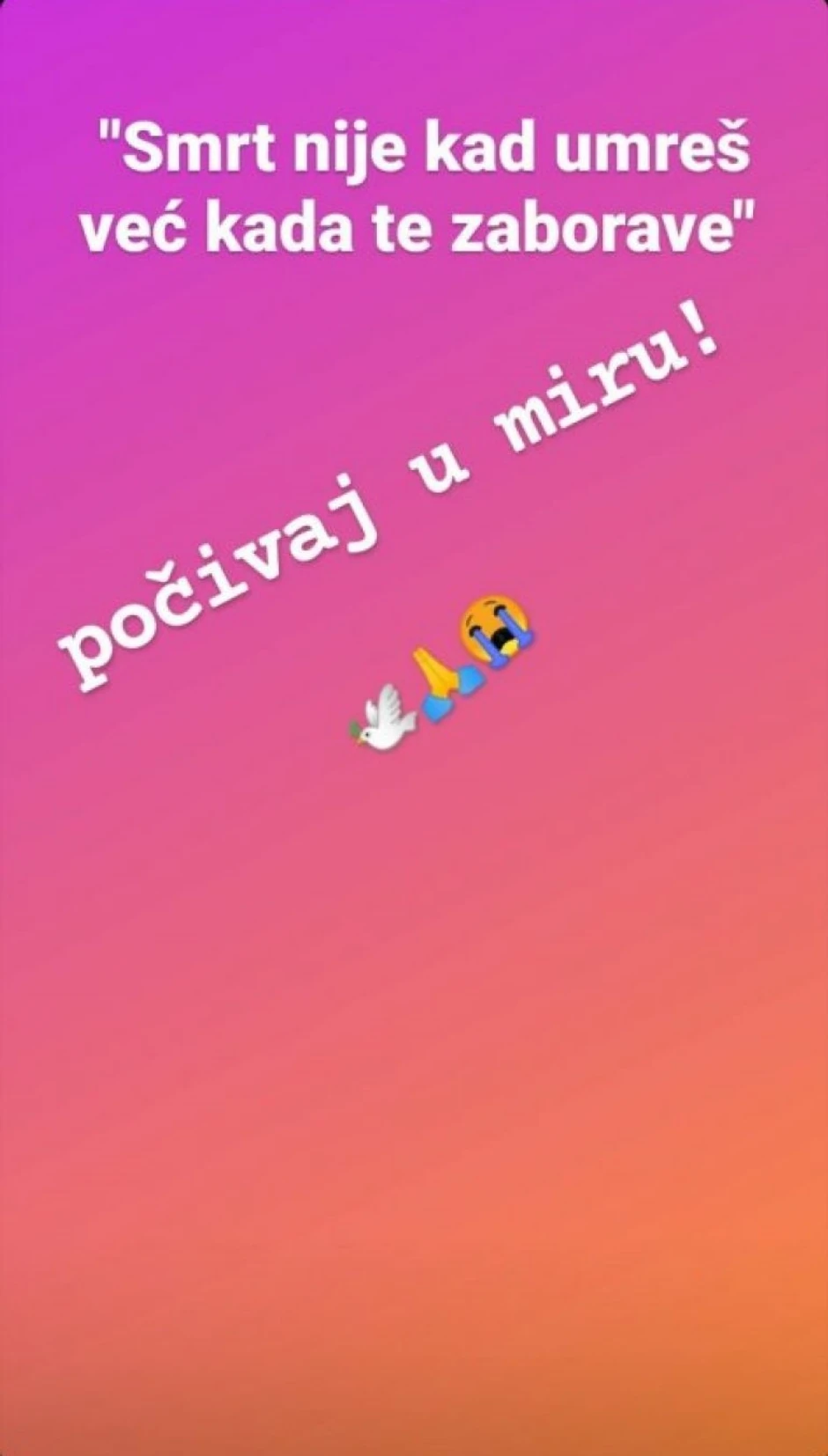 - Smrt nije kad umreš, već kada te zaborave. Počivaj u miru!