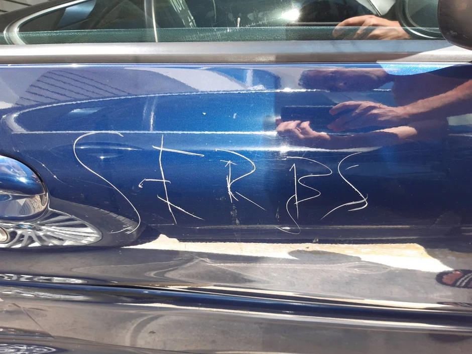 Obeštećenje, ali ni poziv od sudije, još nisu dobili, a ogrebotine na automobilu su toliko duboke da se kompletno vozilo mora farbati.