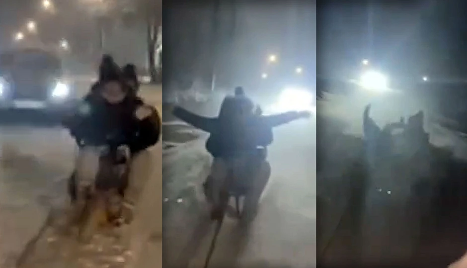 Dve tinejdžerke (16) i (17) povređene su kada ih je pokosio automobil u trenutku kada su pale sa sanki koje je vuklo drugo vozilo. Snimak jezive nesreće objavljen je na društvenoj mreži "Instagram".