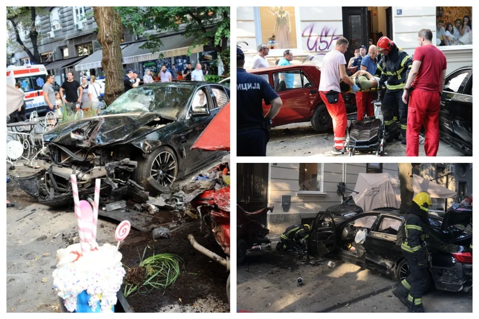 Na raskrsnici se ispred njega pojavio automobil u koji je udario i od siline tog sudara BMW se zakucao u dva parkirana automobila koja je, praktično, bacio u baštu kafića punog ljudi. Samo pukom srećom, u ovom udesu, koji se odigrao za svega par sekundi, niko nije izgubio život. Povređena je tročlana porodica, koja je za "Blic" svedočila o užasu koji su tada doživeli.