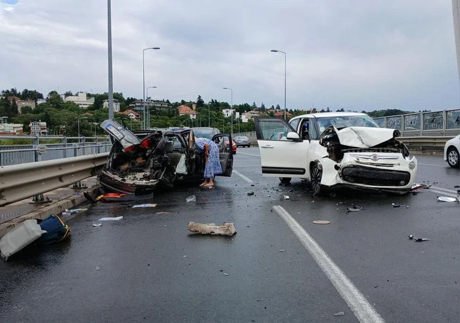 Na mostu na Adi danas je oko 14.45 sati došlo do teške saobraćajne nesreće. Kako se može videti na fotografijama sa lica mesta, sudarila su se dva vozila od kojih je jedno potpuno smrskano.