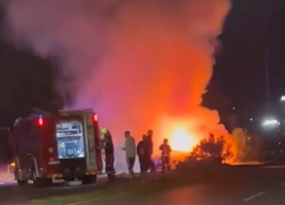 Na mestu nesreće intervenišu vatrogasne ekipe, koje pokušavaju da lokalizuju i ugase požar izazvan ovom teškom saobraćajnom nesrećom.