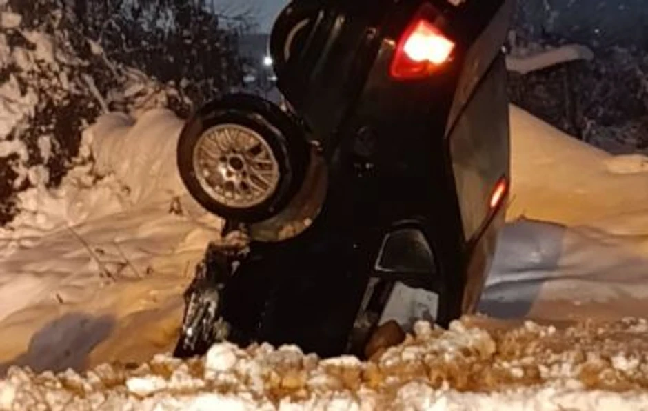 U saobraćajnoj nesreći koja se danas dogodila jedno vozilo je završilo do pola zaronjeno u sneg.