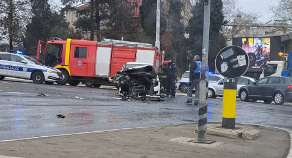 Na samoj raskrsnici Bulevara Vojvode Putnika i Bulevara mira došlo je do teške saobraćajne nesreće u kojoj su učestvovali automobil i gradski autobus.