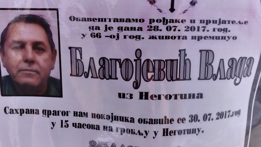Vlada Blagojević sahranjen je u nedelju na negotinskom groblju.