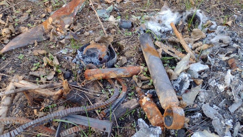 Kopča od pojasa na kojoj je ostao samo čelični deo, deo amortizera, uništenog hladnjaka, ostaci polomljenih stakala, mnoštvo istopljene plastike i spaljena zemlja, svedoče da je automobil na ovom mestu goreo kao buktinja. “Folksvagenov” znak sa maske automobila, čudom je izbegao vatrenu apokalipsu, jer je pre prilikom probijanja četvorotočkaša kroz mrak i gusto šiblje otpao sa maske auta.