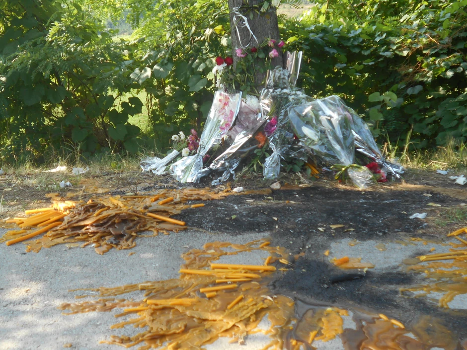 Župljani pale sveće na mestu gde su nastradale Anđela i Ivana, pored obeležja u obliku cveta. Meštanin Aleksandrovca, Dragan Džamić je odmah posle tragedije počeo da uređuje to parče trotoara gde su iznenada prekinuta dva života.