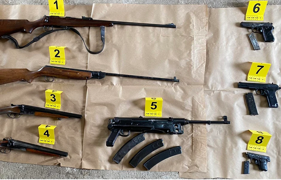 -Prilikom pretresa kuće u okolini Niša u kojoj borave osumnjičeni, policija je pronašla automatsku, malokalibarsku i vazdušnu pušku, tri pištolja, dva krateža lovačke puške, ručnu bombu, prigušivač, 307 metka različitog kalibra i osam patrona za lovačku pušku. Osumnjičenima je određeno zadržavanje do 48 časova i oni će, uz krivičnu prijavu, biti privedeni višem javnom tužiocu u Nišu, saopštila je niška policija.