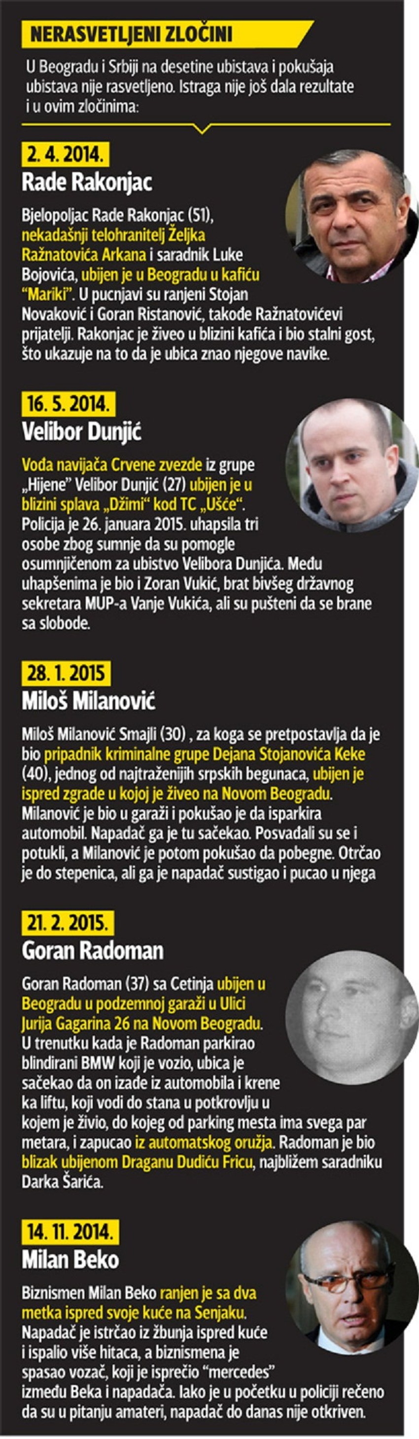 Vođa veterničkog klana i njegova supruga su ubijeni u noći između subote i nedelje dok su se vraćali sa proslave 22 godine braka. Sa njima u Ulici braće Drobnjak, ispred broja 16, gde se munjevito odigrao stravičan zločin, bila je i njihova prijateljica koja se sa njima vraćala sa proslave. Upravo je ona bila i očevidac krvavog ubistva. Srećom, ubica ju je poštedeo.