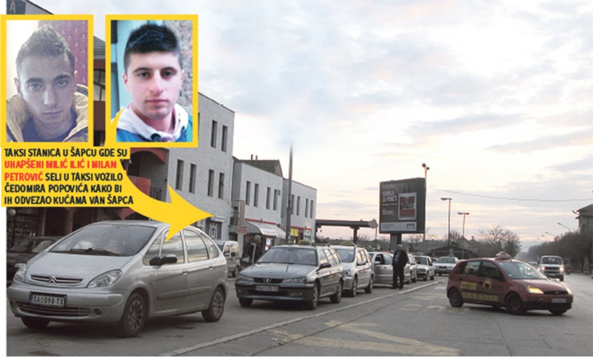 Šabačka policija uhapsila je Milića Ilića (19) iz sela Metlić i Milana Petrovića (18) iz sela Krivaja kod Šapca zbog sumnje da su ubili taksistu Čedomira Popovića (61).