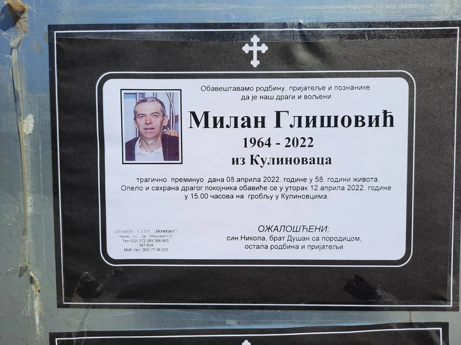 Na seoskom groblju u čačanskom naselju Atenica muk. Nekoliko stotina ljudi koji su se okupili kako bi se zadnji put oprostili od Slađane, Milana i Sretena, samo su se tužnim pogledima pozdravljali.