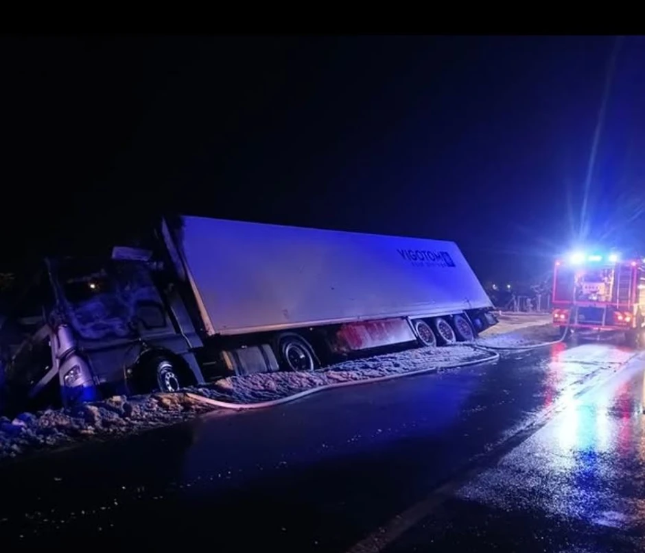 Saobraćajna nezgoda između Futoga i Begeča. Nakon sletanja kamiona sa puta, došlo je do požara na kabini.