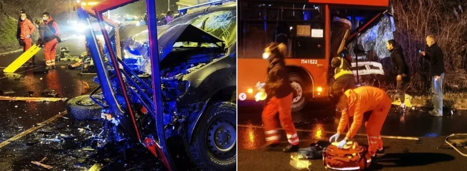 Sudarili su se gradski autobus i putnički automobil, a vatrogasci seku vozilo da dođu do povređene osobe u automobilu.