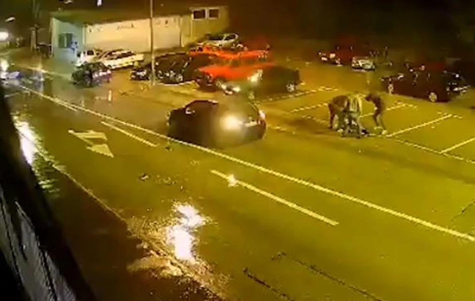 Na jezivom snimku vidi se kojom silinom je nesrećnu ženu udario automobil pa je odletela nekoliko desetina metara dalje i umalo pala pred drugi automobil koji je srećom na vreme stigao da zakoči.