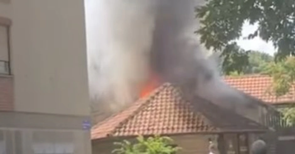 Kako se vidi na snimku koji je objavljen, vatra "guta" krov kuće.