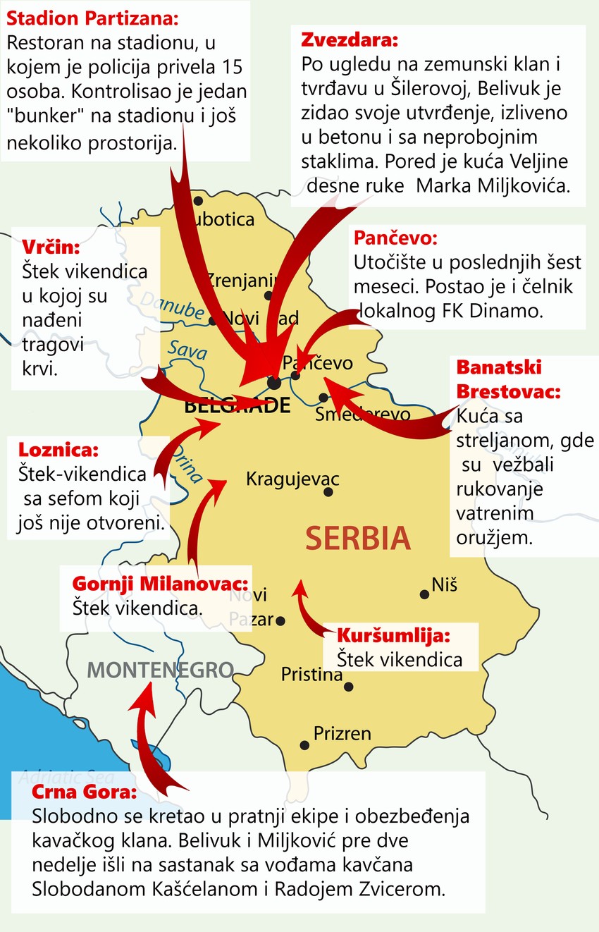 Koliko nije prezao ni od čega pokazuje i njegovo ponašanje nedeljama pre nego što je uhapšen. Belivuk je sredinom prošlog meseca sa Miljkovićem avionom otišao u Crnu Goru na tajni sastanak sa vođama "kavačkog klana" sa kojima inače usko sarađuje. Da je Belivuk u Crnoj Gori javnosti verovatno ne bi bilo poznato da crnogorska policija nije privela Belivuka, Miljkovića i drugog čoveka "kavačkog klana" Radoja Zvicera, na informativni razgovor. Oni su saslušani, a potom pušteni da idu svojim putem u Zvicerovim blindiranim kolima i u pratnji ozbiljnog obezbeđenja.