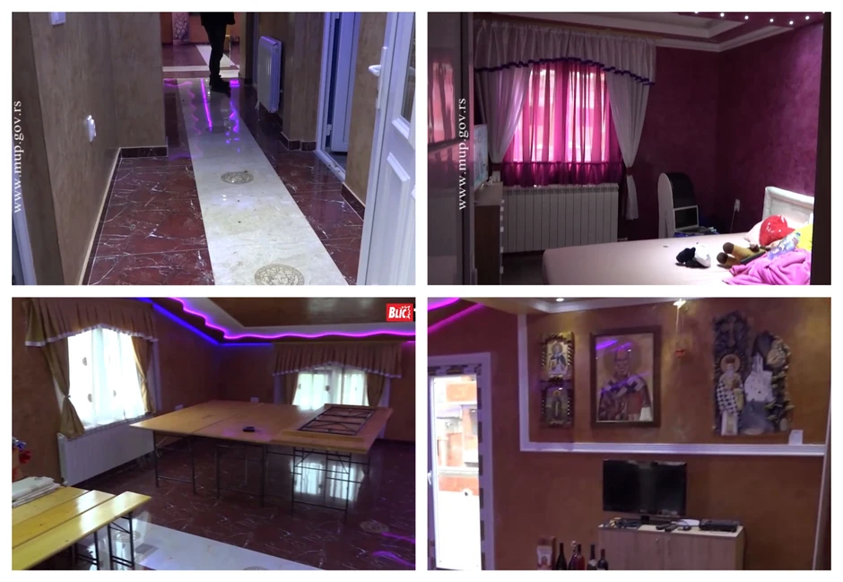 Porodica Nikolić iz Mirijeva podvodila devojku (19) u prostorijama kuće čije su prostorije specijalno opremljene za te prilike - prigušena svetla, mermer, crvene zavese, francuski krevet i desetine boca alkohola. Na snimku koji je napravio MUP prilikom hapšenja beogradske porodice iz pakla, koja je zarađivala od toga što je mesecima podvodila devetnaestogodišnju devojku, vidi se kako izgleda kuća koju je ova porodica opremila novcem zarađenim od nje. Ljubičasti zidovi, sto za bilijar u jednoj sobi, a na zidu ikone.