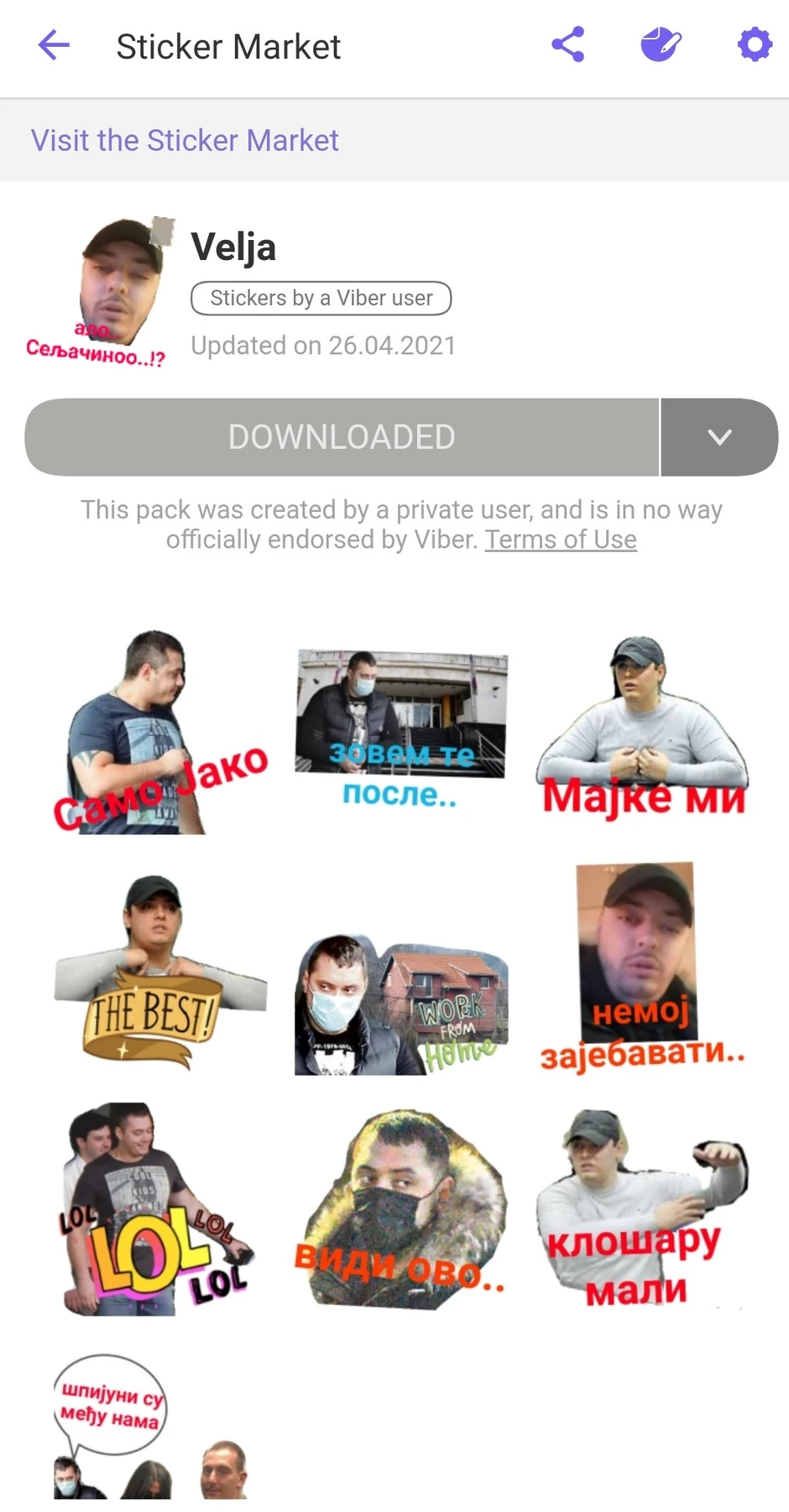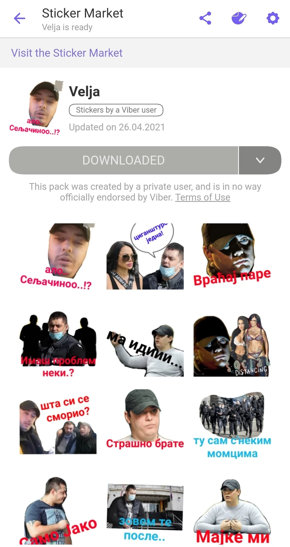 - Sadržaj tog stiker paketa danas je izbrisan sa Viberovog stiker marketa".