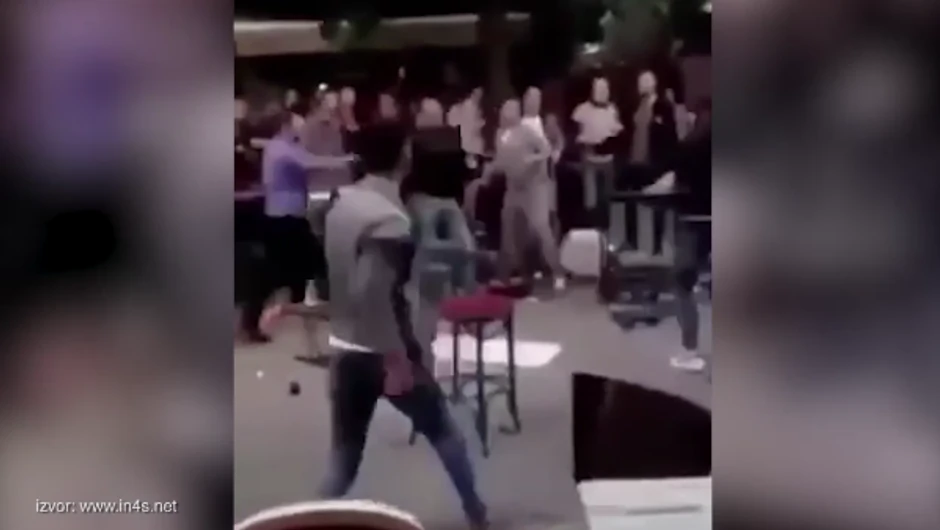 Na snimku se vidi tuča dve grupe mladića u bašti tamošnjih kafića koji su u međusobnom obračunu osim pesnica, korisili stolice, flaše, čaše i sve što im je bilo pri ruci.