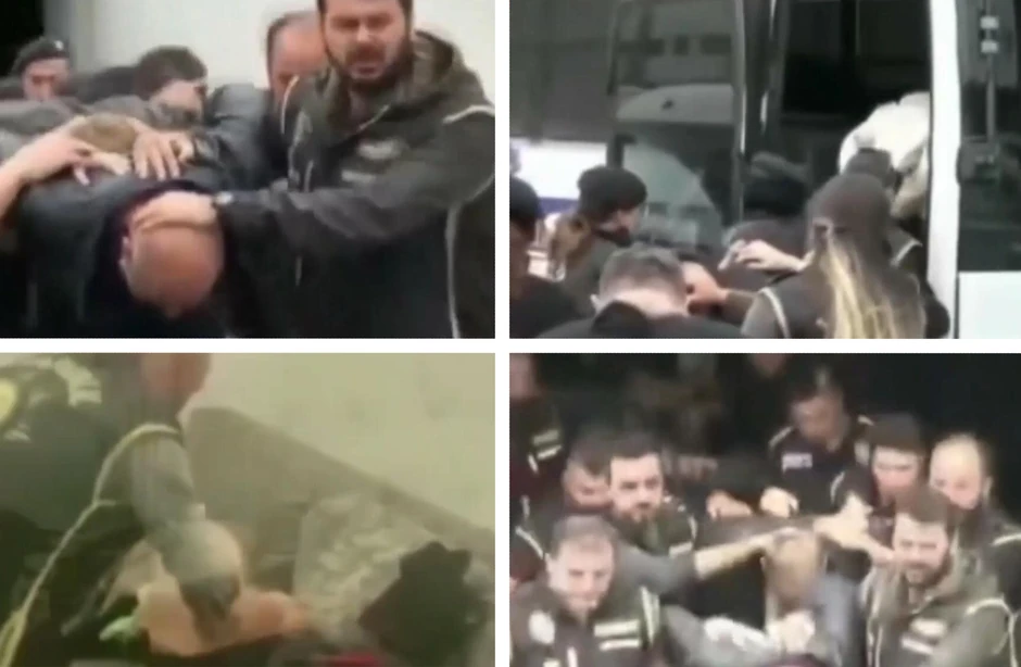 Turski pripadnici policije, prema snimku, iz objekta izvode osumnjičene, tako što pored svakog od uhapšenih sa obe strane stoje policajci, koji ih drže za ruke. Naime, osumnjičeni gledaju u pod, dok su im lisice na rukama odpozadi. Primetno je i to da je ispred objekta parkiran autobus turske policije i da svi uhapšeni ulaze uz pratnju u prevoz.