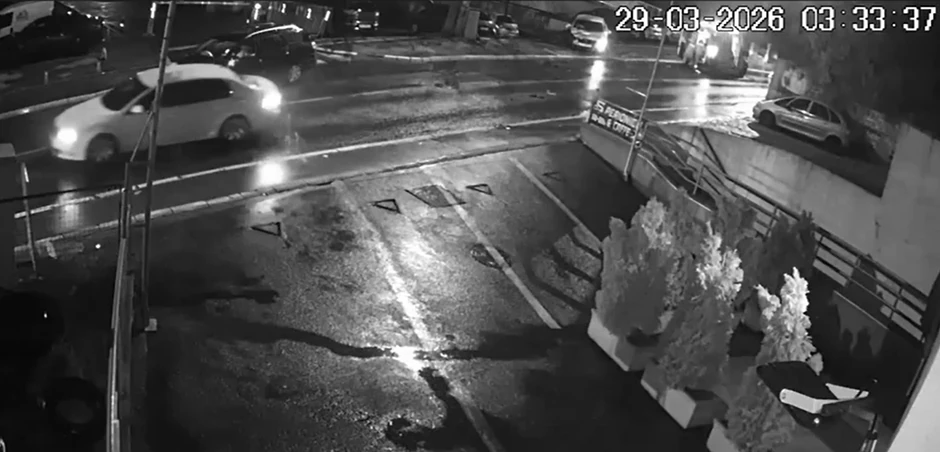 Kako se može videti na snimku, iz za sada nepoznatih razloga automobil je udario u taksi vozilo koje se od jačine udarca okrenulo i završilo na drugoj strani.