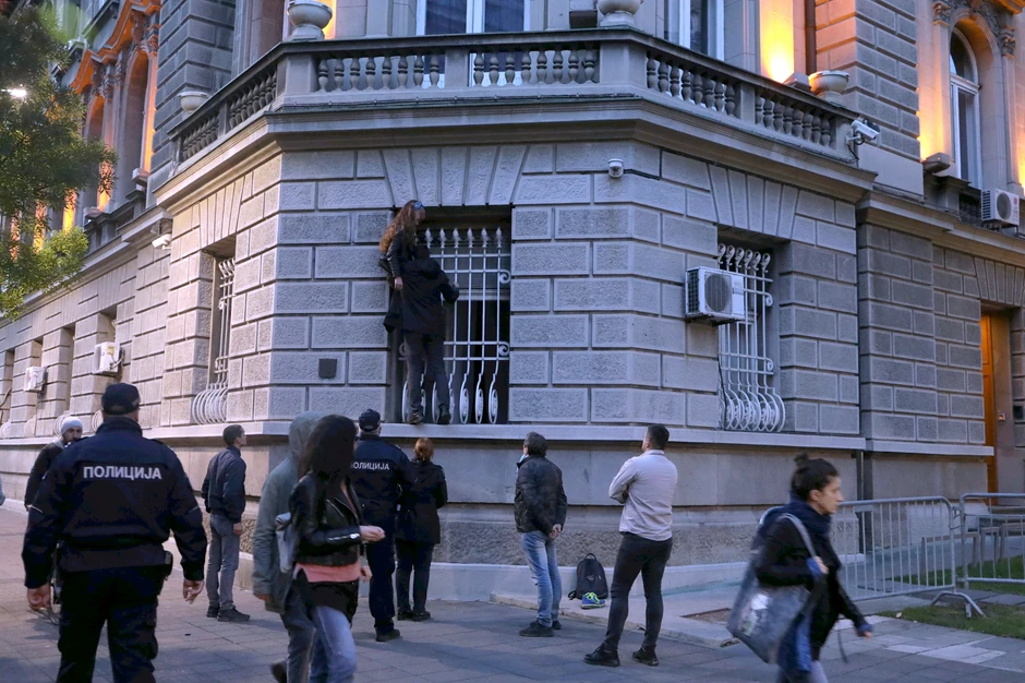 Na zgradu Predsedništva danas u Beogradu se popela devojka i držala za zaštitne rešetke prozora.