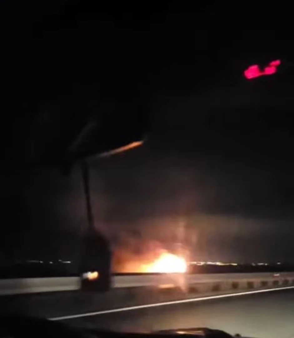 Na autoputu kod Beške u smeru ka Beogradu, došlo je do teške nesreće, kada se zapalio automobil.
