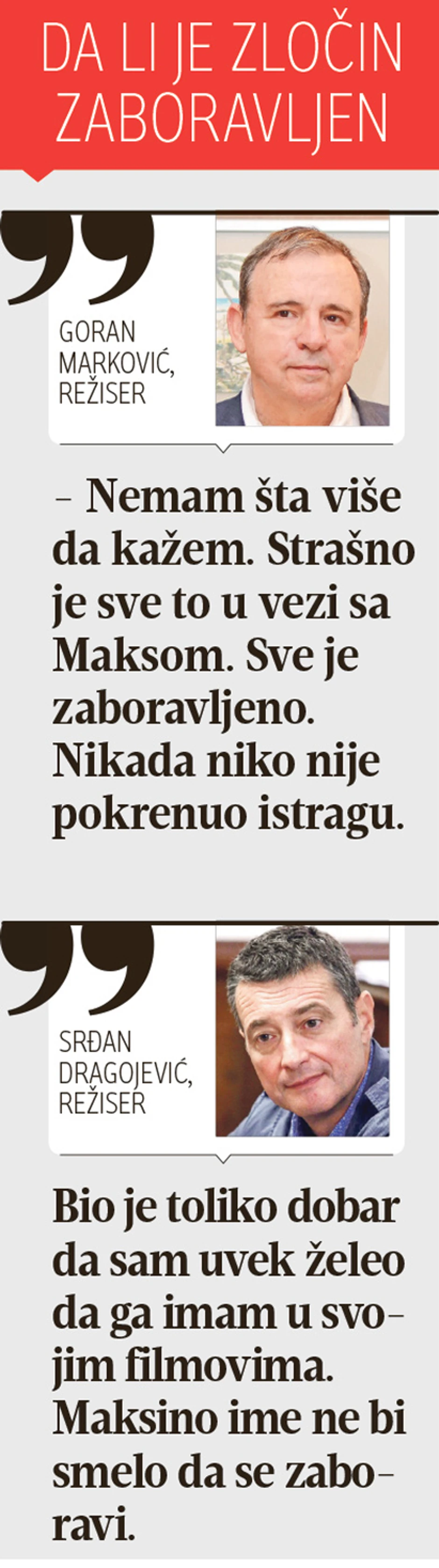 Ni posle 15 godina od smrtonosnog prebijanja Dragana Maksimovića policija nije uspela da identifikuje čopor napadača obrijanih glava koji su ubili velikana glume.