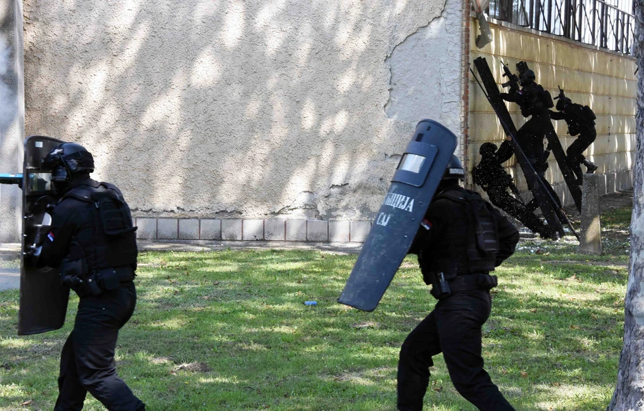 Prikazane su tehnike upada u objekat, savladavanja terorista i oslobađanja talaca.