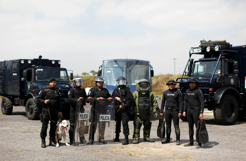 Policijajci koji patroliraju ulicama Meksiko Sitija poziraju na napuštenom parkingu