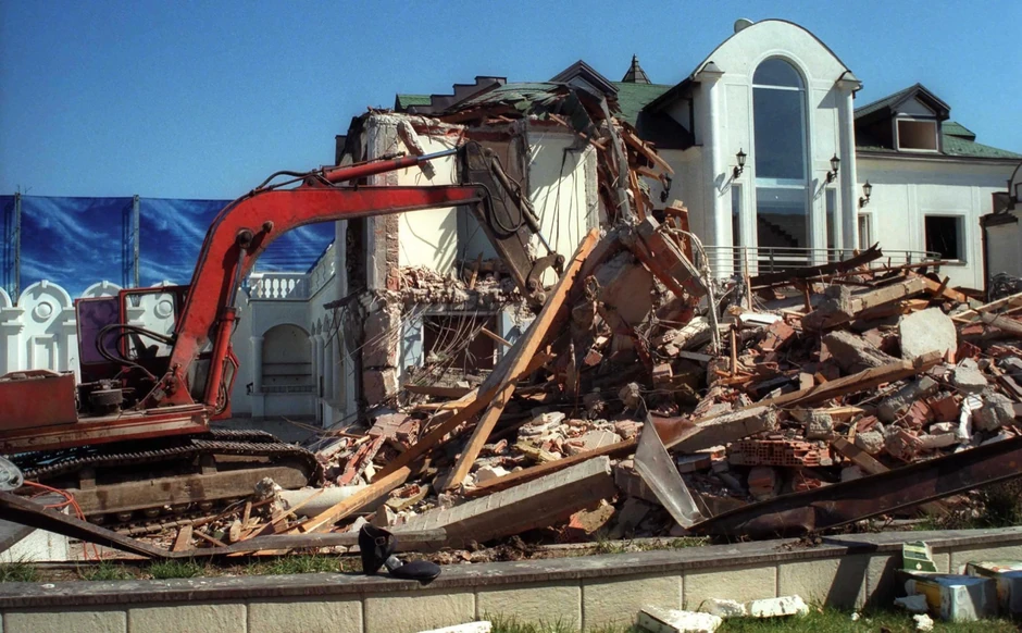 Rušenje zbog nelegalne gradnje počelo je dva dana posle ubistva premijera Zorana Đinđića 14. marta u 14 sati i trajalo je do 27. marta 2003. To je tada bila jedina opcija jer je Zakon o oduzimanju imovine stupio na snagu tek šest godina kasnije, 1. marta 2009.