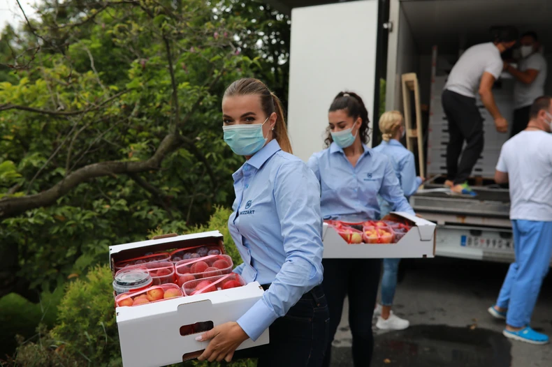 Lekarima i medicinskom osoblju koji zbog epidemije kovida danonoćno borave u kovid bolnicama, kompanija Mozzart pripremila je kvalitetne nutritivne obroke od svežeg voća i vitaminskih sokova koje zaposleni Mozzarta dostavljaju u kovid bolnice širom Srbije.
