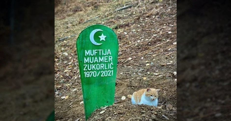 Korisnici Tvitera objavljuju fotografije mačka Muamera Zukorlića koji ne želi da se odvoji od groba preminulog muftije.