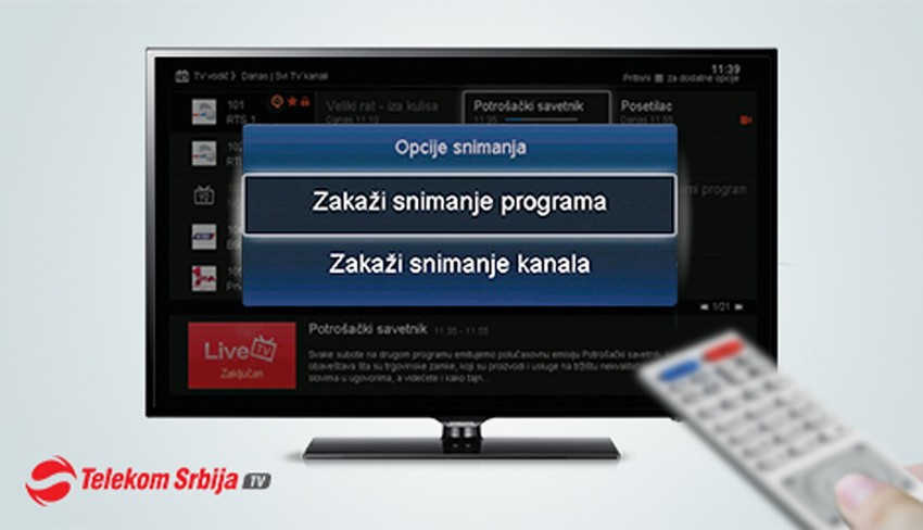 Zakažite snimanje sadržaja TV programa koji vas interesuje i gledajte ga kada vam to odgovara uz uslugu Snimanje sadržaja.
