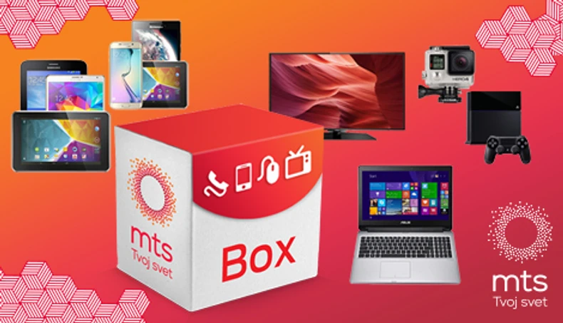 Opredelite za neki od Box 2, Box 3 ili Box 4 paketa i, uz ugovor na 24 meseca, kupite neki od modela Sony, Samsung, JVC, Vox, LG, Tesla televizora, po povoljnim cenama na 12 rata, neki od modela Apple, Samsung, Acer, Alcatel, HTC, Huawei i drugih mobilnih telefona iz bogate mts ponude uređaja, na 24 mesečne rate, ili neki drugi uređaj - tablet, laptop, računar, kameru ili igračku konzolu, takođe na rate.