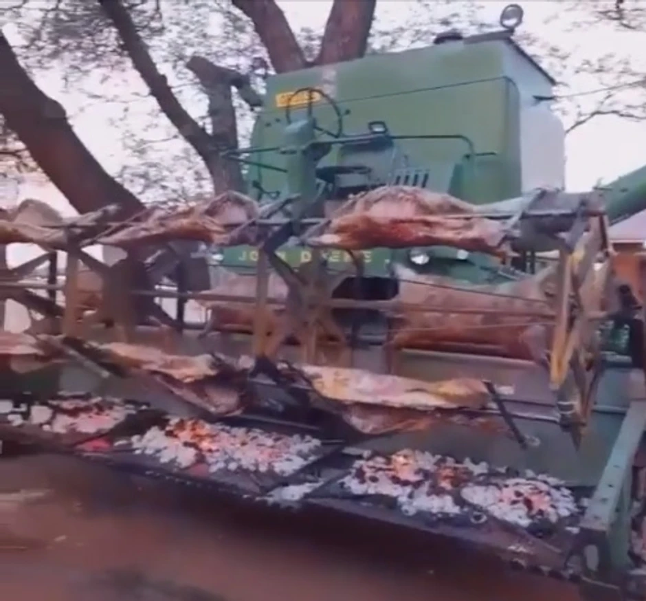 Naime, jedan dovitljivi vlasnik kombajna odlučio je da ga iskoristi za pečenje prasića.