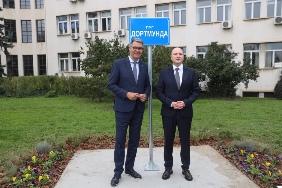 Gradonačelnik Novog Sada Milan Đurić zajedno je sa gradonačelnikom Dortmunda Tomasom Vestfalom svečano otkrio tablu sa nazivom Trg Dortmunda u čast četrdeset godina od potpisivanja Povelje o bratimljenju dva grada.