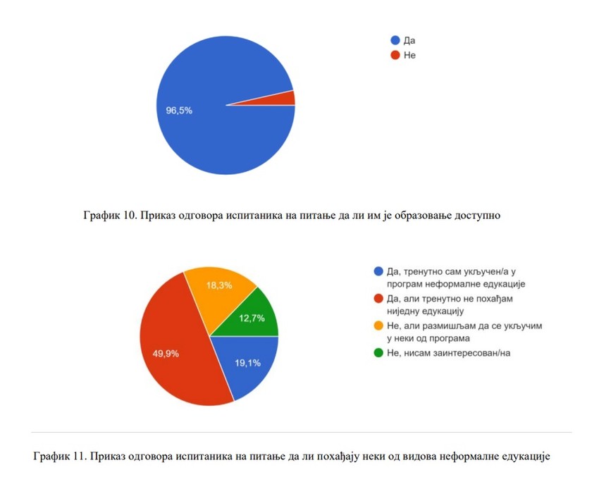 Naime, skoro polovina mladih u Novom Sadu, čak 49,9 odsto njih pohađalo je programe neformalnog obrazovanja kao što su seminari, kursevi, radionice, strani jezici i edukacije, koje nisu u vezi sa školom ili fakultetom, dok 18,3 odsto razmišlja da se uključi u neki od pomenutih programa.