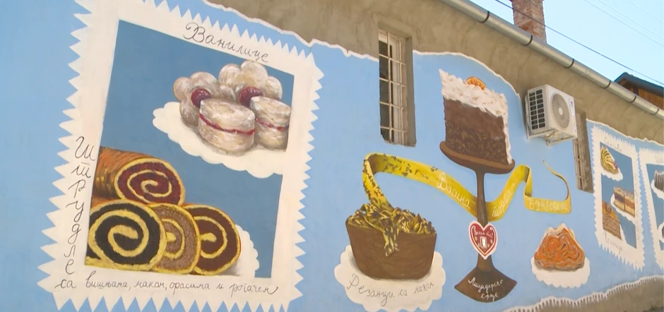 - Da, kroz istraživanje se pokazalo da je ovaj naš centralni kolač zapravo naš, a da su ostali koje vidite, došli kroz migracije ljudi u ovo mesto. Pa tako na muralu imamo i kuglof i rezance sa makom, vanilice i bundevaru koje su naše bake pa i deke pravile i sada mi gledamo da ih nekako vratimo u modu - kaže Vladimir Budalić, iz Pokreta Gorana Vojvodine.