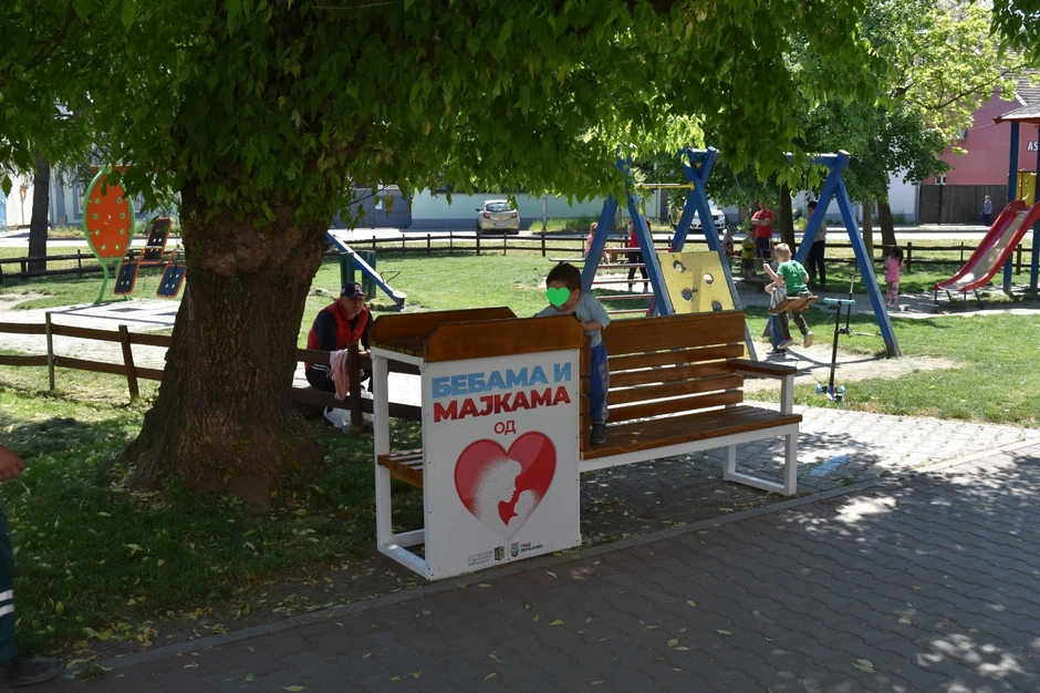 Na četiri lokacije u Zrenjaninu danas su postavljene klupe na kojima će majke moći da doje i presvlače bebe.