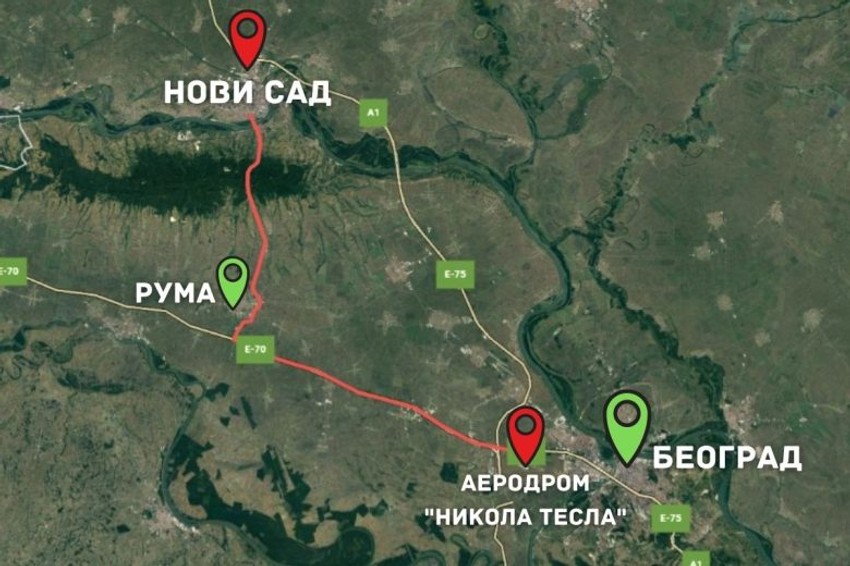 Ako se kod Rume uključite na auto-put E-70 u pravcu Beograda, iz Novog Sada do Aerodroma "Nikola Tesla" stižete za oko 35 do 40 minuta vožnje.