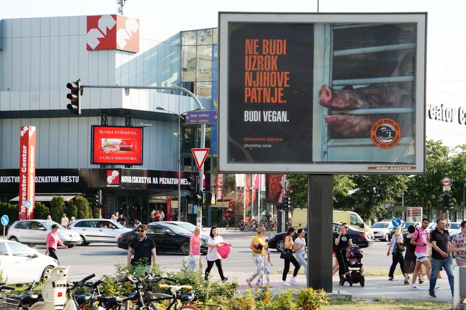 Novosađani ovih dana na ulici okreću glavu da provere da li dobro vide bilborde koje je postavilo udruženje "Novi Sad Animal Save". "Ne budi uzrok njihove patnje, postani vegan", samo jedna je od poruka kojima pozivaju sugrađane da prestanu da jedu meso.