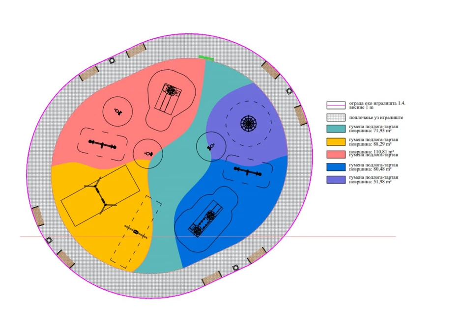 Predviđeno je da se na igralištu postave po dve klackalice, ljuljaške i njihalice, zatim kula za penjanje, kula sa mostićem i dva tobogana za decu uzrasta od jedne do četiri godine, kao i kula sa toboganom, te zid za penjanje za decu od tri do šest godina. Uz igralište će biti postavljeno osam klupa, četiri kante za otpad i ograda, prenosi portal 021.rs.