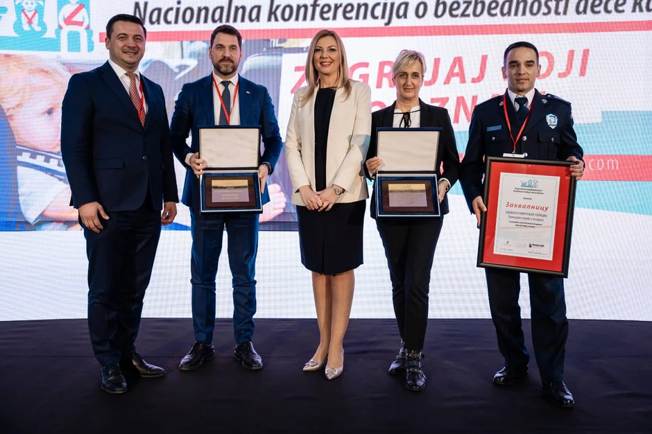 Na konferenciji su uručene i nagrade "Najsigurniji zagrljaj" koje se dodeljuju institucijama ili pojedincima koji su najviše doprineli unapređenju bezbednosti dece kao putnika u protekloj godini. Ovogodišnju nagradu dobila je ministarka za brigu o porodici i demografiju prof. dr Darija Kisić i Dom zdravlja "Novi Sad", a zahvalnica je uručena Saobraćajnoj policiji Jagodine.
