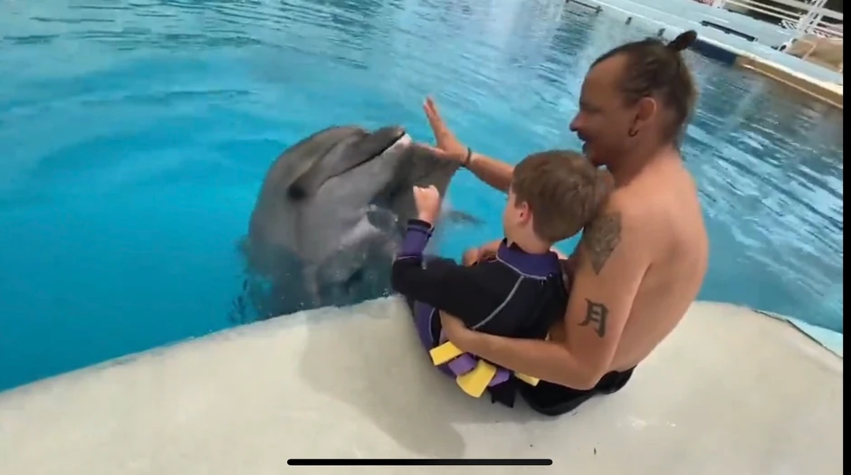 - Mi provodimo sa svakim detetom tokom tog dvonedeljnog ciklusa, pola sata svaki dan u vodi, a nakon toga se prelaza na terapiju, kako mi to kažemo - na suvom, pod impulsom celog tog utiska koji su oni imali u vodi sa tim fenomenalnim životinjama - objašnjava delfinoterapeut Nikola Radin za RTS.