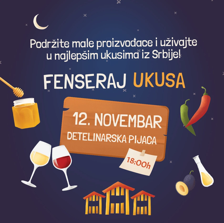 Drugi "Fenseraj ukusa" održaće se 12. novembra na Detelinarskoj pijaci, sa početkom u 18 časova. Organizatori festivala "Fenseraj ukusa" pozivaju sve zainteresovane da im se još jednom pridruže na manifestaciji posvećenoj najlepšim i najzanimljivijim ukusima iz Srbije gde ih očekuju još lepši ukusi i rukotvorine i sjajna atmosfera.